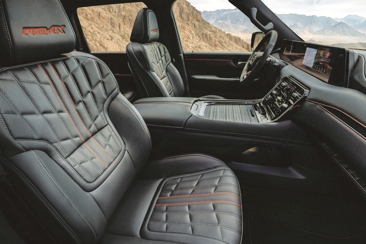 من الداخل، يوفر باترول PRO-4X تجربة فريدة تجمع بين الفخامة والصلابة، بمقاعد جلدية مطرزة بخياطة مميزة، ونظام ترفيه متطور مع شاشة عرض أفقية قياس 28.6 بوصة. كما يدعم Apple CarPlay وAndroid Auto اللاسلكي، ليوفر اتصالا سلسا في كل رحلة