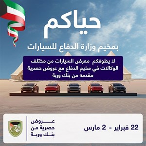 حياكم.. معرض السيارات في مخيم وزارة الدفاع بعروض حصرية من بنك وربة احتفالاً بالأعياد الوطنية2024/2/23